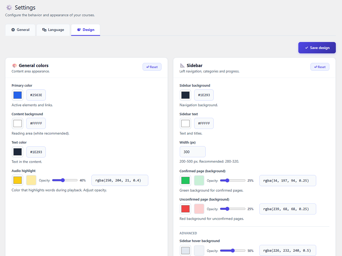 Couleurs, barre latérale, design et styles entièrement configurables